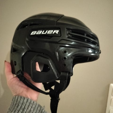 Tästä seuraavalle luistelijalle Bauer kypärä. Ostettu meille uutena ja nyt pieneksi jääneenä eteenpäin. Koko S 52-57cm.