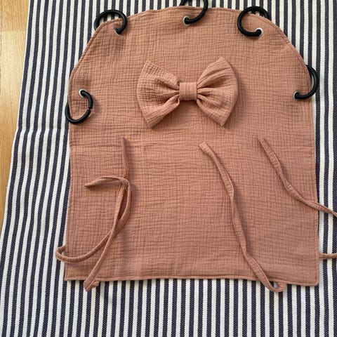 Vohveli-vaunuverho rusetilla. Väri: old mauve. Kiinnitysrenkaat mukana.