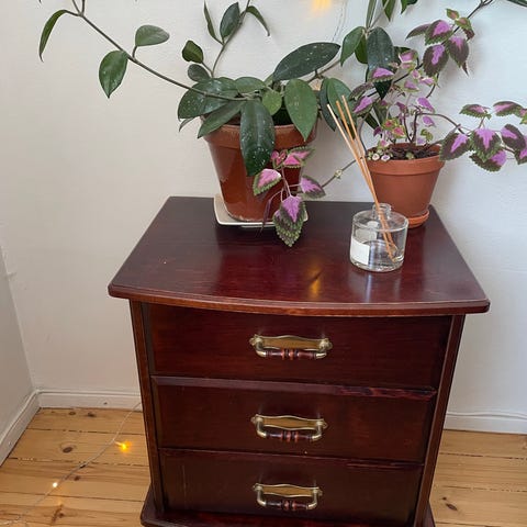 Siisti pikku lipasto ja peili. Meillä ollut käytössä eteisessä. Nyt tarpeettomana