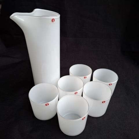 Myydään Iittalan opaalilasi kaadin ja 4 lasia Sarpaneva. Koko settin hinta 50€
