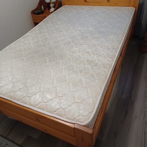 Myydään turhan kapeaksi jäänyt noin 5 vuotta vanha sänky sijauspatjalla tai ilman. Runko todella siistissä kunnossa pientä alareunan kankaan rispaantumista lukuun ottamatta ja patja ok kunnossa, mutta toki melko muotoutunut.