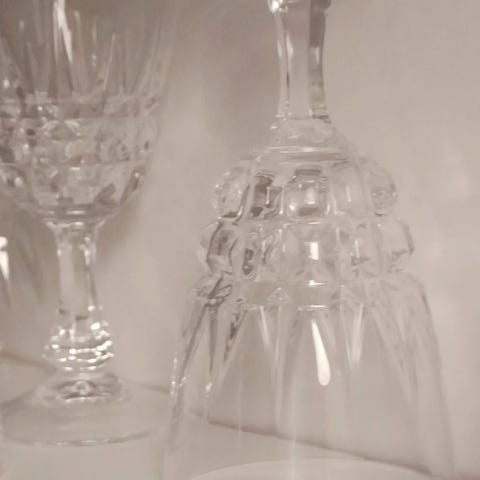 Kristallilaseja 6 kpl. Hyväkuntoiset. Halk.4cm ja kork.6cm. Hinta yht.10 euroa.