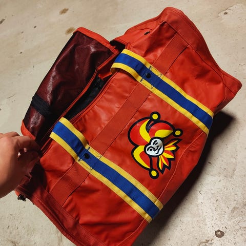 Myydään kuvan käytetty, mutta edelleen käyttökelpoinen lätkäkassi Jokereiden logolla. Katso kuvista tarkemmin.
