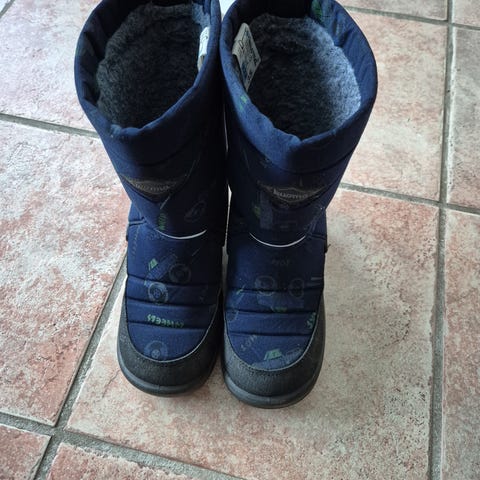 Myydään hyvin vähän käytetyt mustat Kuoma-talvikengät. Muuten ei käytönjälkiä, mutta toisen kengän varteen tullut jostain reikä, ks. kuva.