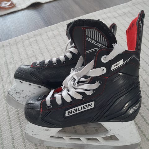 Bauer XLS lasten luistimet. Koko merkintä nro 3 joka vastaa Bauer luistimien kokotaulukon mukaan 35 ja jalkapohjan pituutta 22 - 22,5 cm.
