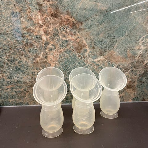 Lansinoh maidonkerääjä / alipainepumppu, Emma maidonkerääjät ja liivinsuojia (pussi avattu, ehkä yksi otettu).