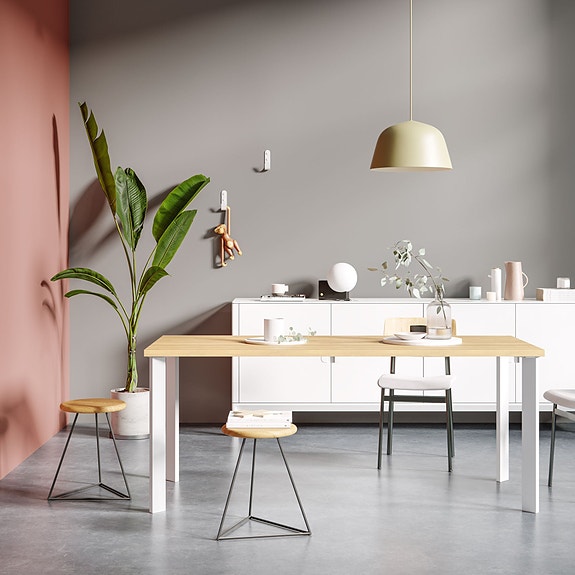 Täysi setti (4 kpl) laadukkaita metallisia penkinjalkoja. Jalat ovat pituudeltaan 40cm ja sopivat erinomaisesti penkinjaloiksi yhdessä vastaavien pöydänjalkojen kanssa. Yksittäin kiinnitettävät jalat ovat helppo kiinnittää ja ne voi sijoittaa vapaasti levyn koosta riippumatta. Tuotetiedot Väri: Valkoinen. Pakkaus sisältää puuruuvit ja jalkojen pohjaan asennettavan lattiasuojan. Materiaali: Jauhemaalattu teräs, jalkojen teräsprofiili 75mmx25mm. Jalat on suunniteltu asennettavaksi 45 asteen kulmassa. Paino: 7 kg Painoraja: Suositeltu käytettäväksi 2-3 -hengen istuttavien penkkien kanssa. Kestävää ja käytännöllistä muotoilua Pöydänjalkojen muotoilussa on ollut inspiraationa 1960-luvun Ercol-pöydät, jotka ovat klassinen esimerkki modernista funkkistyylistä. Jämäkästä ja kestävästä rakenteestaan huolimatta pöydän yleisilme säilyy ilmavana. Yhdistämällä jalat massiivipuiseen tasoon tai leveisiin lankkuihin, voit luoda upean ja aikaa kestävän ilmeen. Vaihtoehtoisesti voit myös yhdistää jalat esimerkiksi valkoiseen ikivanerilevyyn, jolla luot minimalistisen skandinaavisen ruokapöydän.