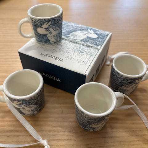 Lumileikkejä mini mukit vuodelta 2011. Korkeus 3 cm. Näitä on kaksi, myyn yksittäin.
