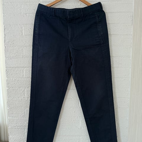 Myydään hyväkuntoiset ja laadukkaat COSin chinot koossa 52. Housuissa on tyylikäs beigen/hiekan sävy ja edessä pukuhousutyyliset prässit/laskokset, jotka tuovat ryhtiä rennompaankin asuun. Malli on mukava ja hieman kapeneva lahkeista.