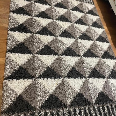 Kevyt pehmeänukkainen vaalenapunainen matto. Matossa on toisella puolella tahra mikä luultavati lähtee pesussa, mutta muuton edessä en valitettavasti itse ehtinyt pestä. Huomioin tämän kuitenkin hinnassa! Muuton puhdas ja ehjä matto :)