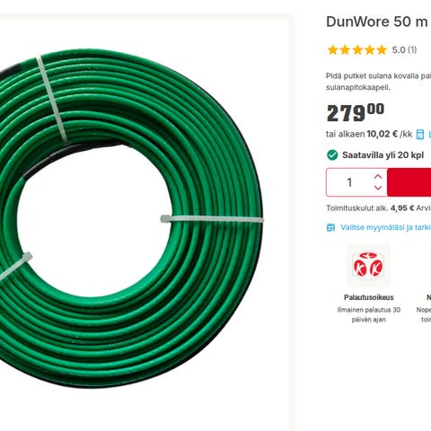 Toimiva uudenveroinen sulanapito kaapeli pituus 5 metriä itse säätyvä