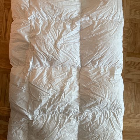 Vuonna 2022 käyttöönotettu ja kahdella lapsella käytössä ollut Joutsenen vauvan untuvamakuupussi 60x90 cm. Makuupussin saa myös avattua untuvapeitoksi, jolloin peiton koko on 120x90 cm