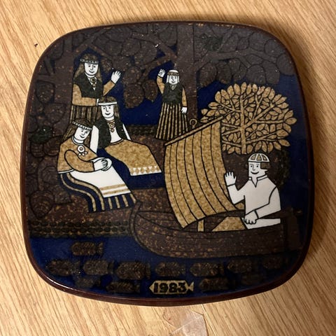 Iittala Kalevala Talvinen seinälautanen, 1993. Hyvässä kunnossa ja arvokas. Sinivalkoinen talvimaisema.