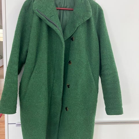Villasekoitetakki (18% villaa, katso kuvat). Koko XS, mutta sopii minullekin (olen M-XL) yhdellä paidalla ilman neuletta. Olin aiemmin XS-S, jolloin takki oli hyvin rentoa mallia. Nykyään on tiukempi eikä tämän ja jatkuvan nyppyyntymisestä johtuvan harjaamisvaatimuksen takia minun makuuni. Takki kuvassa nopeasti harjattu vaateharjalla. Nyppyyntyy nopeasti siis, mikä osittain syynä luopumiselle. Jos jaksaa harjata ja huoltaa, tästä kaunis takki jollekin! ☺️
