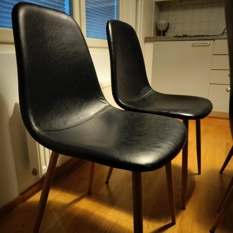 4 Maskun ruokapöydän tuolia, tekonahka kulahtanut, päällä päällinen