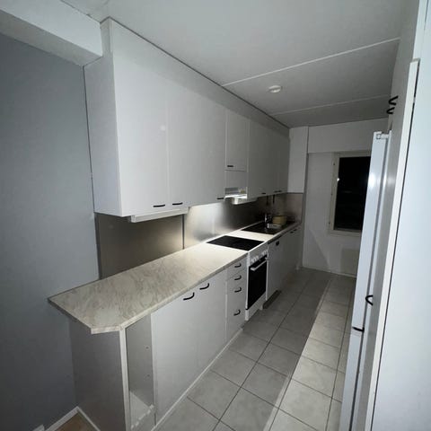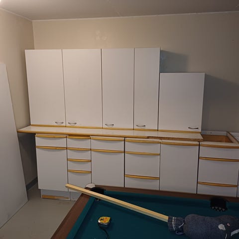 Käytön jälkiä on nähtävissä ja esim saranoita pitää fiksailla.
