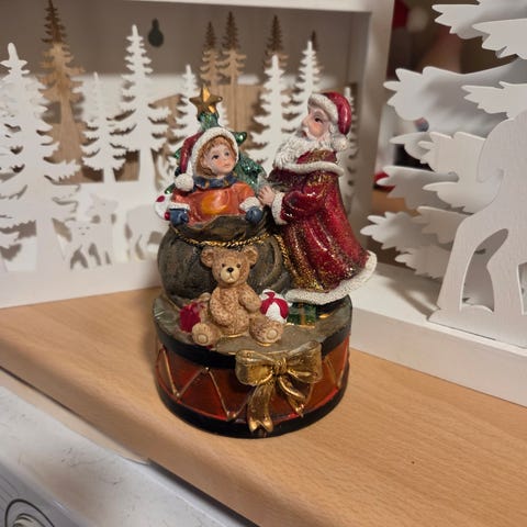 Uusi ja käyttämätön karuselli soittorasia valokuvakehyksellä. Sopii ristiäislahjaksi esimerkiksi. Ostettu Kultajousesta. Sellofaanit avattu mutta ne voin kiinnittää takaisin.