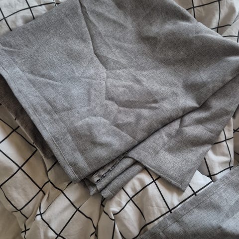 Hyväkuntoset verhot, pituus noin 224cm ja leveys 47cm. Itsellä ollut klipsi kiinnityksellä keittiössä mutta saa myös ohkaselle verhotangolle. Pesen ennen lähetystä 😊