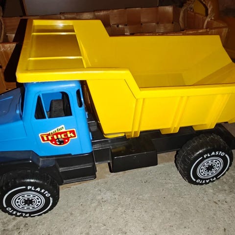 Aikoinaan Lidlistä ostettu ja paljon leikitty. Talo on siisti, helppo kasata ja muuten ehjä; yksi (muovi)ruuveista katkesi ja osa jäi reikään. Traktori hajosi aikoja sitten. Sen peräkärry on käytetty paloautolla. Paloautolta puuttuu toinen hälytysvaloista. Mitat ja viat näkyvät kuvista.