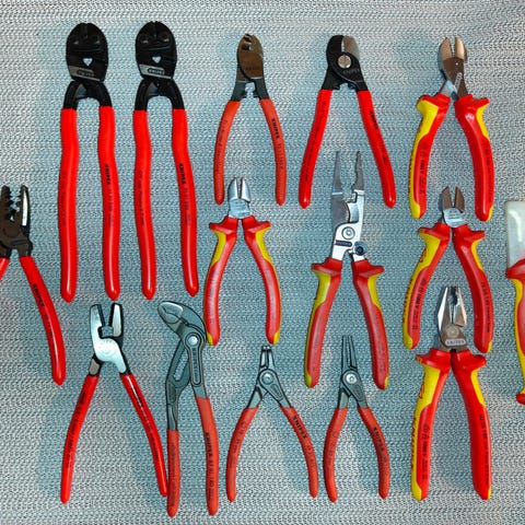 Kuvan setti käytettyjä, ehjiä, Knipexin pihtejä ja käyttämättömät kuorintapihdit. Nouto ja käteinen, postitus ostajalle p.k