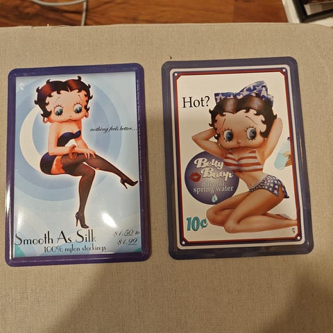 Betty Boop rahalipas. Lukko puuttuu. Jotain käytön jälkiä näkyvissä.