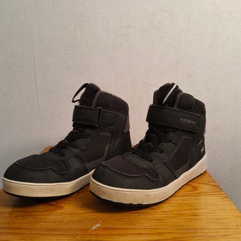 Vikingin lämpimät talvikengät, koko 38, mustat. Unisex-malli, sopii sekä tytöille että pojille. Tarrakiinnitys. Meillä jääneet melko käyttämättä, joten kunto erinomainen. Ei kulumaa. Goretex eli vedenpitävät.