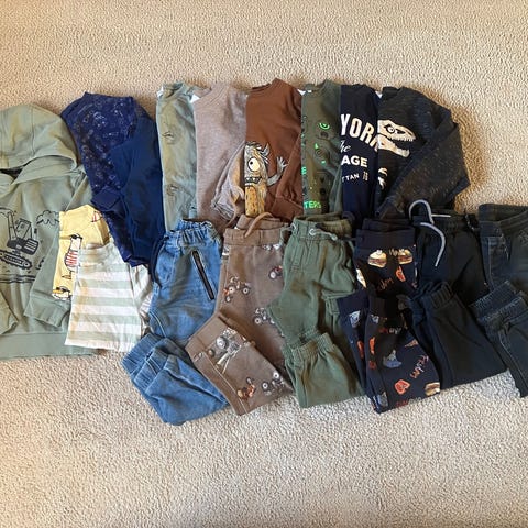 Osaa enemmän ja osaa vähemmän käytetty. Joissakin hieman pesunukkaa. Kaikki ehjiä. Koot 110-116. Huppari kokoa 116-122.