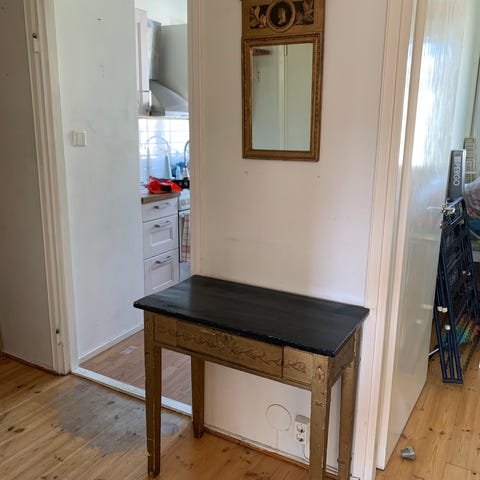 Antiikkinen pöytä. Tuossa kuvassa eri kannella joka ei kuulu alkuperäisesti pöytään mutta saat senkin mukaan ( marokkolainen tarjotin, voi asentaa myös seinälle) + Puu kansi mukaan joka kuuluu pöytään Lev. 80cm + kiinnikkeet . Haku Nokia.