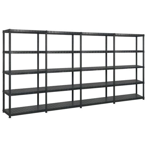 Jokaisessa hyllyrivissä on 10 rankaa, päätylevyt ja kammet, 48 hyllylevyä