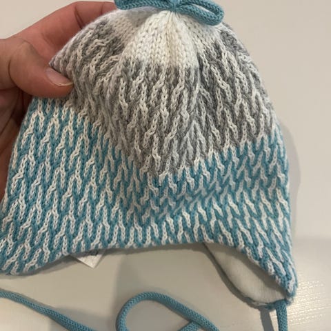 Vaaleanpunainen pörröinen pipo puuvillavuorella. Kiinnitys solmittavilla naruilla. Koko 36/38cm, 0-3 kuukautta.