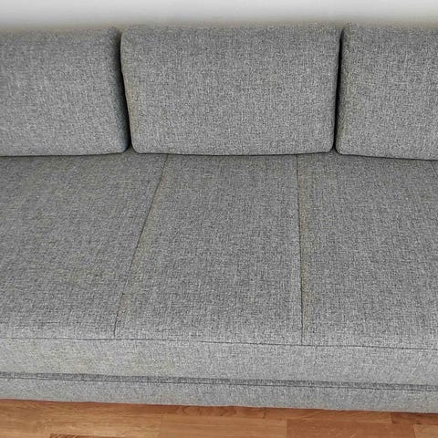 Vähällä käytöllä ollut alle vuoden vanha VIMLE 2:n istuttava vuodesohva leveillä käsinojilla.
