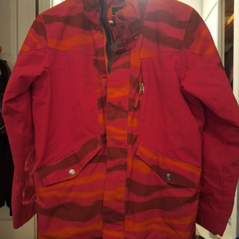 Takissa on huppu, vetoketjukiinnitys ja useita taskuja pikkutavaroiden säilytykseen.