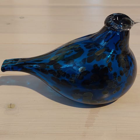 Oiva Toikan vihreä lasilintu hippiäinen, jonka pituus on noin 6,5 cm ja korkeus on noin 5 cm. Lintu on signeerattu "O.Toikka Nuutajärvi NP" eli lintu on ilmeisesti Toikan Napapiirin lasin tuotantoa. Lintu on erinomaisessa kunnossa. Nouto tai postitus.