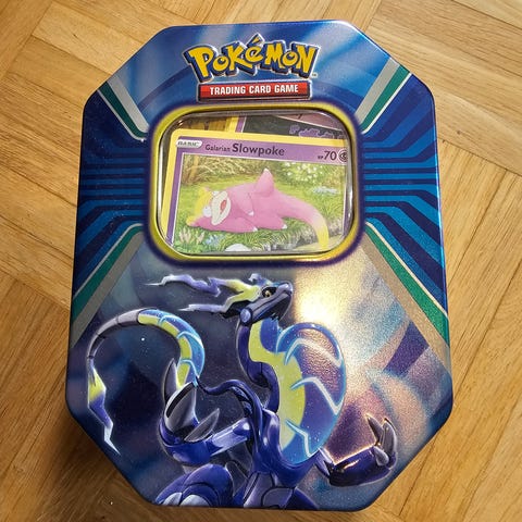 N. 540 Pokemon-korttia metallirasiassa. Kaikki kortit ovat hyväkuntoisia ja käyty läpi niin, ettei mukana pitäisi olla juurikaan tuplia. Kiva esimerkiksi Pokemon-fanille lahjaksi.