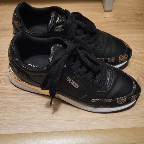 Beige-mustat Guess tennarit. Koko 39, sisämitta 25cm. Ostettu 4/25 ja olleet satunnaisessa käytössä. Omaan jalkaan hippasen liian isot. Tukevat ja lämpimähköt, ei ohutta tekoa.
