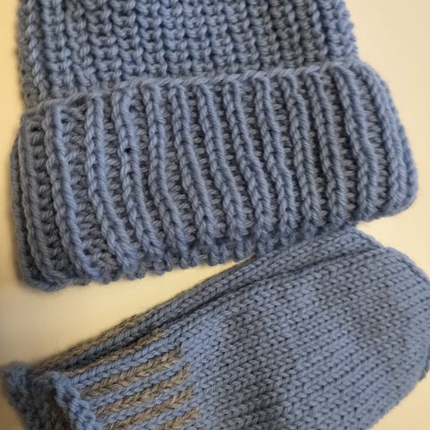Beige ja harmaa unisex, lankana Novitan Hygge. Viimassa käännä resoriosuus alas suojaksesi. Kulkeutuvat Kamppiin tms. Melkein lankojen hinnalla.