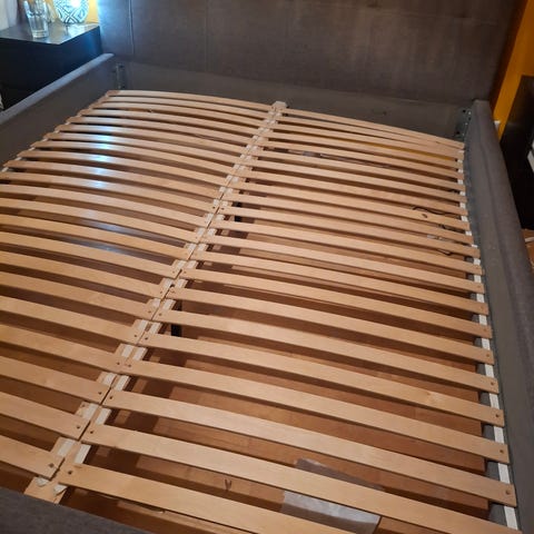 Minulle tarpeeton, saa hakea. Erittäin hyvä nukkua, reunojen ansiosta patjat pysyy hyvin paikoillaan ja aikuisillekin sopiva leveys 90cm. Säleitä kannattelevat muoviosat paikoin kuluneet ja yksi hukassa. Luulen että Ikeasta saa varaosia.