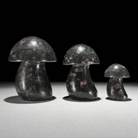 Upea setti ruby zoisite -palloja räätälöidyillä telineillä.