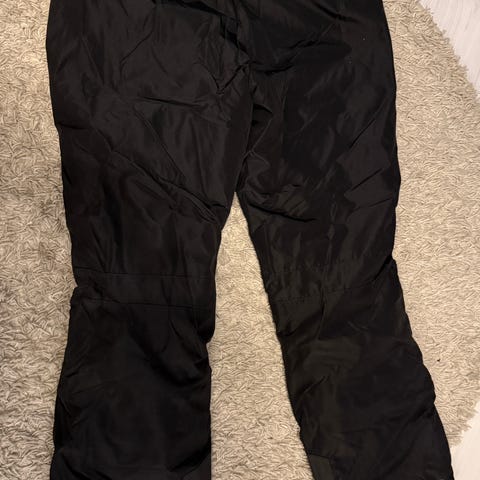 - kiinteät henkselit, vyötäröllä takana kuminauha, vyölenkit, takaa pidempi
