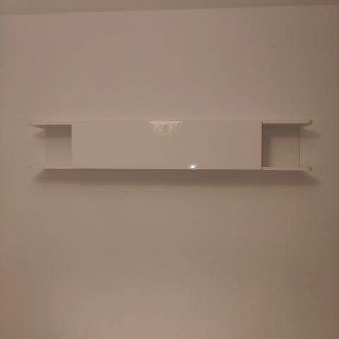 Myyntiin Ikean valkoinen tauluhylly, Mosslanda. Leveys 115cm. Pientä käytön jälkeä, ks. lisäkuvat