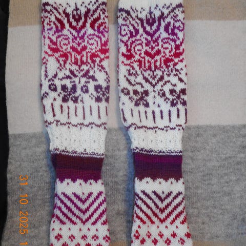 Sukat on kudottu Nordlys Viking ja Nalle sukkalangoista koko 38-40