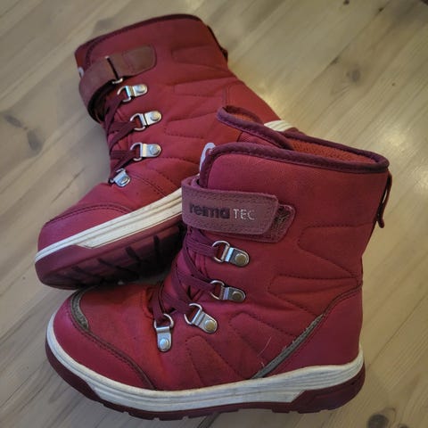 Yhdellä tytöllä yhden talven. Vähän kärjessä kulumaa. Koko 30, jalan oltava n. 16,5-17,5 että sopii. (Tytöllä 18,3, ja pienet nyt)