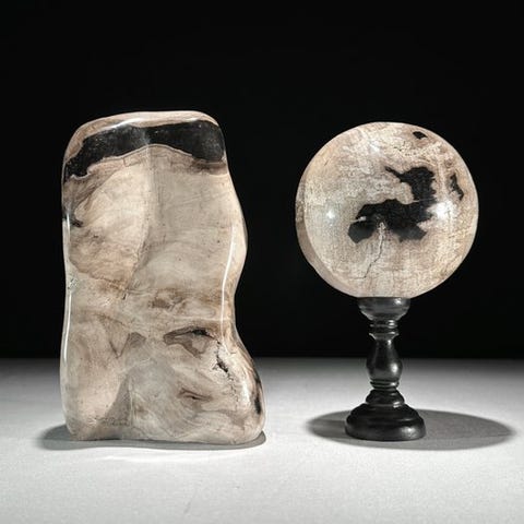 Ihastuttava parivaljakko muistetusta puusta, vapaamuotoisesta ja pallosta, räätälöidyllä jalustalla.