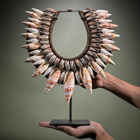 Seria alkuperäiskansojen kaulakoruja, jotka on tehty nassa-kivistä. TOLAÏ-kansa, Uusi Britannia, Papua-Uusi-Guinea. Kaulakorut sisältävät satoja pieniä nassa-kiviä. Merkittävää on, että lähes kaikki niistä ovat saman kokoisia, mikä antaa niille erittäin sileän, primitiivisen muodon.