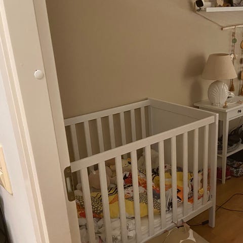 Ikean Sniglar pinnasängystä taaperolle sopivaksi muokattu sänky. Lapsi pystyy kätevästi kulkemaan itse sänkyyn ja pois. Mukaan puhdas ja laadukas patja, jossa on aina pidetty patjansuojusta (saa halutessa mukaan).