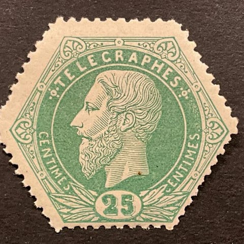 Belgia 1871 - Telegraafzegel 50c Bister - koevedos vaaleanpunaisella paperilla.