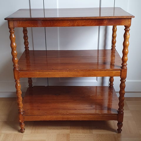 Myydään kaunis puinen, sininen laatikollinen vanha sivupöytä. Kulumaa.