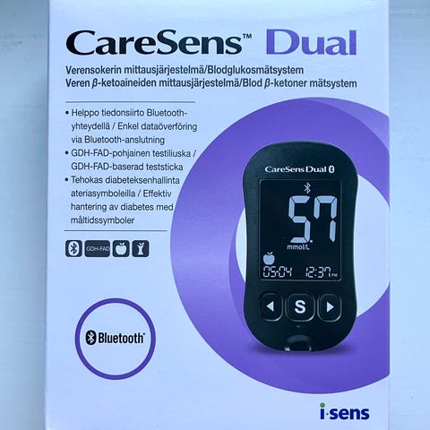 CareSens N POP on pienikokoinen verensokerimittari, joka mittaa verensokerin nopeasti (5 sekuntia), auttaen diabeteksen seurannassa. Helppokäyttöinen, löydät käyttöohjeet netistä. Verensokerin mittaamiseen soveltuvat CareSens N -testiliuskat. Täysin toimiva ja erinomainen kunto.
