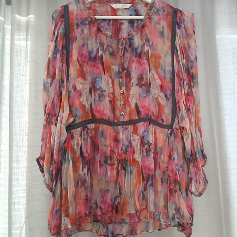Myydään kaunis Odd Mollyn mekko, koko merkin oman taulukon mukaan on 3, mikä vastaa reilua L-kokoa. Minulla, 170cm pitkällä, helman alareuna tulee puoleenväliin säätä (eli mekko on pidempi kuin kuvassa olevalla mallilla).