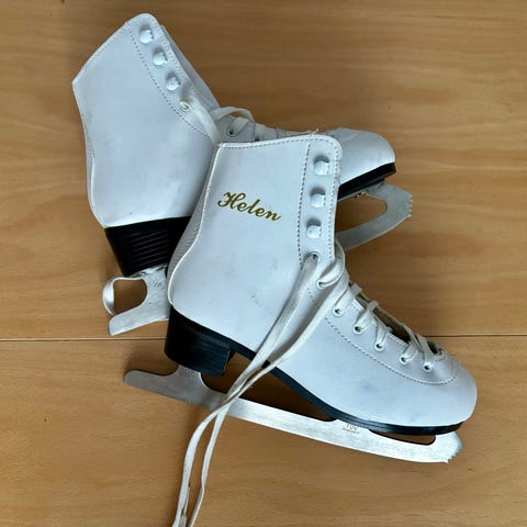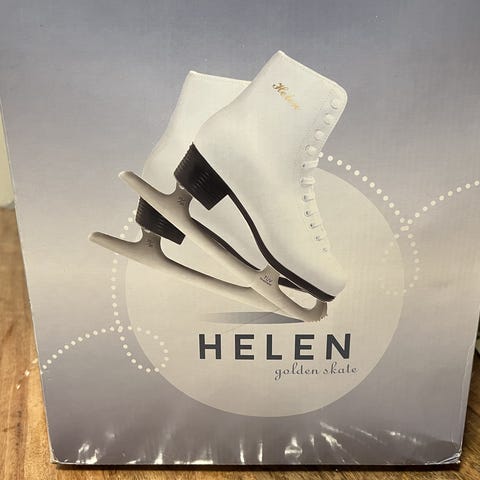 Helen lasten luistimet, koko 37, valkoinen väri. Hyvässä käytetyssä kunnossa. Pari viiltoa pinnassa.